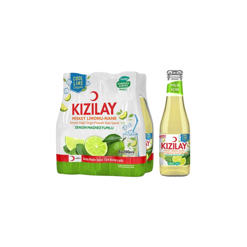 KIZILAY Eau Pétillante Aromatisée au Citron Vert et à la Menthe 6x200ml