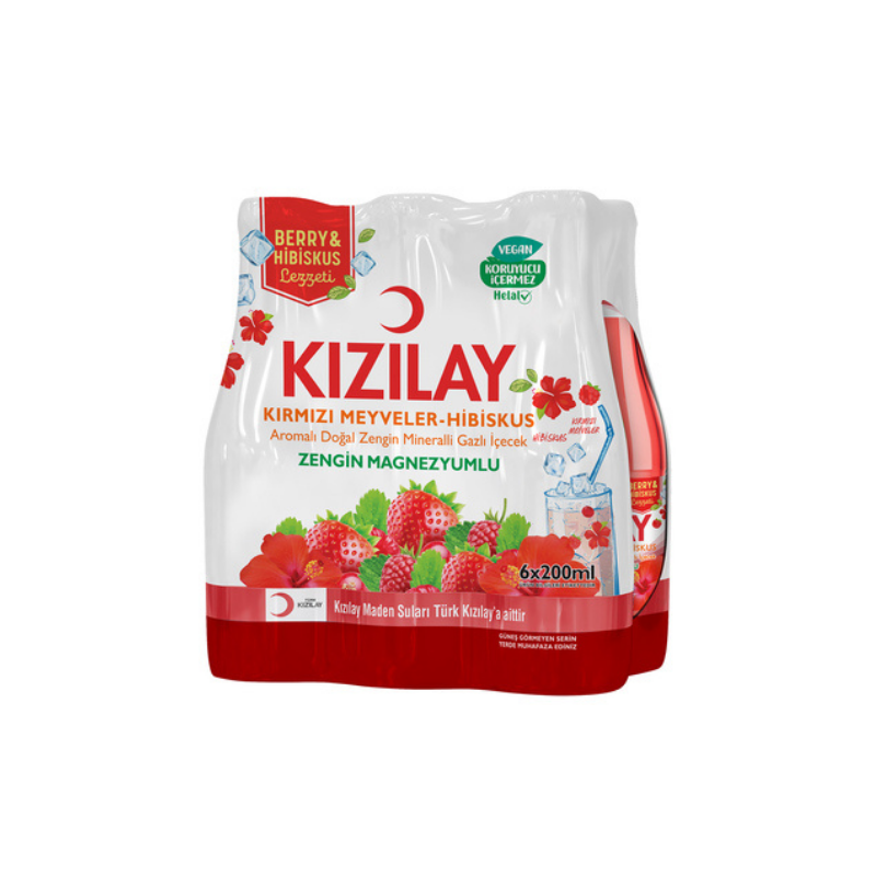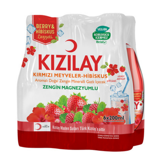 KIZILAY Eau Pétillante Aromatisée aux Fruits Rouges et Hibiscus 6x200ml